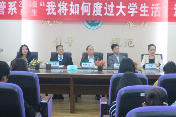 2014级新生入学后,为了增强新生们对学校的归属感,明确大学目标,我系分别于2014年10月13日和20日在系部会议室举行了新生“我将如何度过大学生活”演讲会。卫生管理系王树春主任、系党总支副书记南延社、系刘建刚副主任、学工部部长、学生处处长董绪民参加了演讲会。会议由卫生管理系党总支副书记南延社主持。