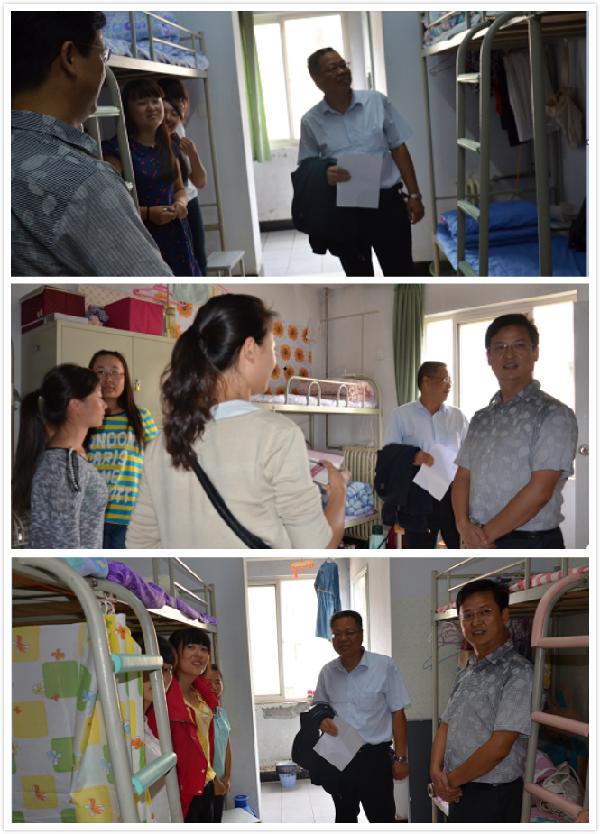 为了进一步做好新生入学教育工作,加快新生适应大学生活,9月23日下午,带着对2015级新生的牵挂,卫生管理系党总支副书记南延社、副主任刘建刚、学生科副科长鲁江和新生辅导员孙嘉镁老师,深入新生宿舍,看望慰问新生,为新生送去了殷切关怀和温暖。