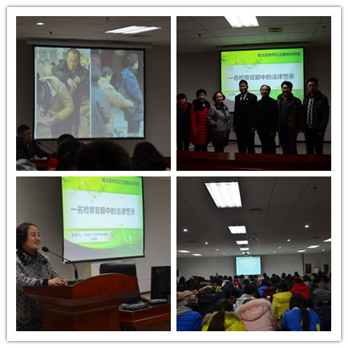 讲座伊始,首先由鲁江老师对各领导、老师分别进行了介绍,然后对我校普法宣传月及此次法律知识讲座做了简单的介绍。之后,思政部部长桑利娥教授讲话,她首先对此次法律知识讲座给予了充分的肯定,并说明此次讲座对同学们学习、生活有着积极的意义,同时对同学们知法守法也提出了希望,最后隆重的介绍了孙佰明检察官。孙检察官也在同学们热烈的掌声中走上前,开始了此次的讲座。