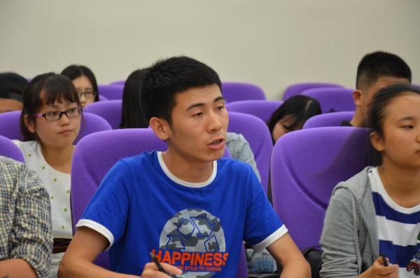 学生党员安晓璞与熊书记就学生党员自身问题如何解决展开讨论