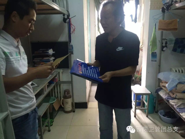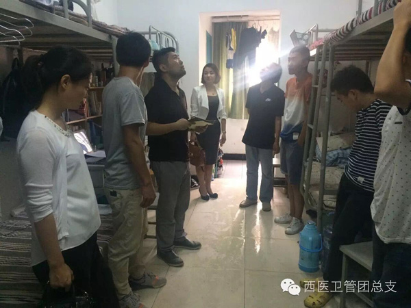 为响应学校创建“平安校园”的号召,同时了解学生宿舍安全状况和加强同学们的宿舍安全意识,卫生管理系副书记张士奇、副主任刘建刚、学生科副科长鲁江 ,以及辅导员王晓燕 、孙嘉镁于9月13日中午前往我系大一和大二男女生宿舍进行宿舍安全检查,开展安全教育活动,活动中重点指导张贴、宣传讲解校创建平安校园办公室下发的“宿舍安全警示”宣传物。