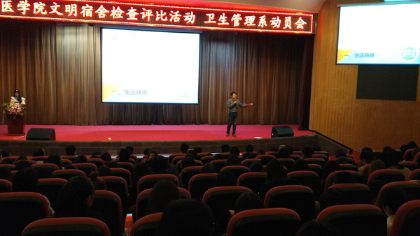 为了教育引导学生养成讲文明、树新风、守纪律的良好习惯,加强文明宿舍建设,全面迎接省级“文明校园”和平安校园创建验收工作,积极推动和谐校园建设活动,我校开展了文明宿舍检查评比活动。我系积极响应学校号召,第一时间进行宿舍内宣传及网络媒体宣传,同时为了让每一名学生了解此次活动,引导学生养成良好习惯,自觉营造安全第一、健康向上、丰富多彩的宿舍文化氛围,卫生管理系特此召开全系动员大会。