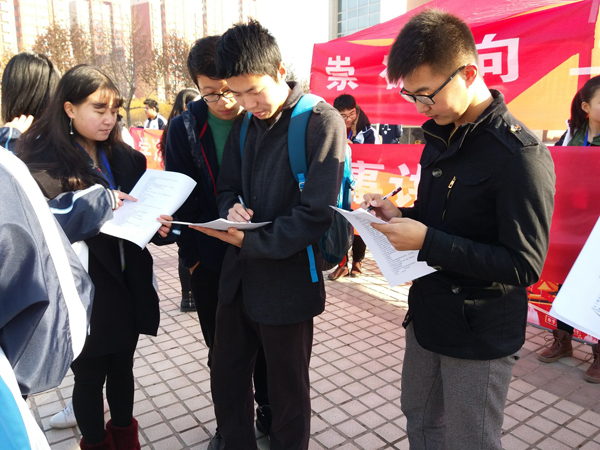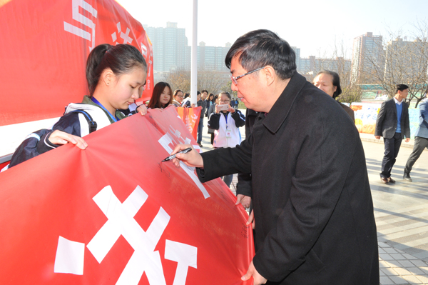 (卫生管理系)按照省教育厅“《陕西省教育系统开展法治宣传教育的第七个五年规划(2016-2020年)》的通知”精神,由我校党委宣传部、校团委主办,卫生管理系承办的法治宣传月之“学法、知法、懂法、事事讲法,守法、用法、护法、人人普法”万人签活动于2016年12月6日顺利召开。校党委书记范兵、党委宣传部部长马征、校工会主席白万晓、校团委书记王燕、思想政治理论课教学研究部部长桑利娥、卫生管理系副书记张士奇、卫生管理系副主任刘建刚,思政部、卫生管理系、其他院系部分教师和我校学生参加了签名活动。