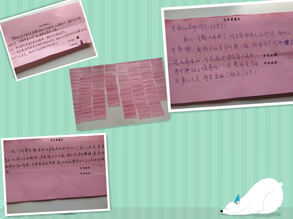 《致家长的一封信》得到广大家长的一致好评,为阖家团聚又增添了一份温馨与快乐(家庭照片3张)。读到辅导员的信,家长把心中的想法和建议写了出来(回执全照)。回信不长却都包含着家长们对孩子的殷切希望(回信单张照片4张)。我们认真的读了家长的回信,总结如下:家长们希望学校能够加强学生安全教育、心理健康教育、感恩教育,多开展相关教育的活动,多组织学生进行社会实践活动,能够改善学生住宿条件,可以加强辅导员跟家长的沟通,使家校统一,更好的教育学生。