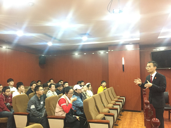 碑林法院审判管理办公室主任、新闻发言人翟全军对师生们的到来表示了欢迎,他为大家介绍了该院目前的机构设置、人员编制、近年来的收结案数量、案件繁简分流、多元化纠纷化解、创新“枫桥经验”、打造一站式诉讼服务中心建设等方面的情况,使大家对荣获“全国优秀法院”、“全国法院文化建设示范单位”等荣誉称号的碑林法院有了一个清晰的了解。