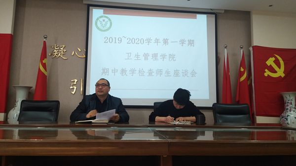 2019年11月7日,卫生管理学院在会议室组织召开了2019-2020学年第一学期期中教学检查师生座谈会,学院副院长苗建宁、副书记刘建刚两位领导、教学科长任㛃、学院各教研室主任、各年级学习班长及学生代表参加了会议。会议旨在了解本学院学生在学习、生活中出现的各种问题,并尽力一一解决,从而为同学们创造更好的学习环境。