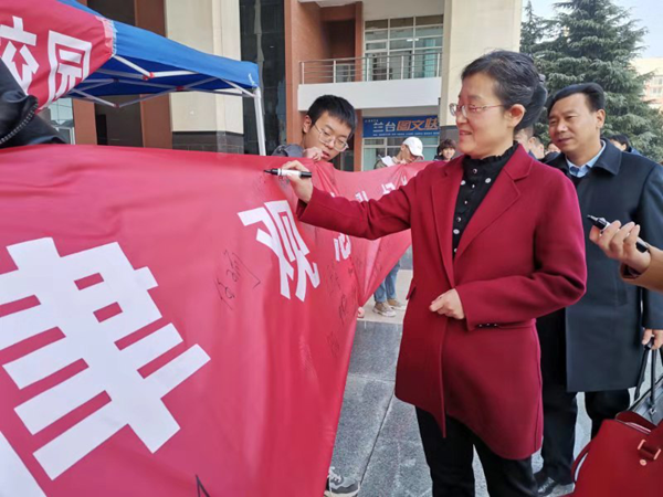 为了增强宪法意识,弘扬宪法精神,12月6日,卫生管理学院在展翅广场举行了2019年“宪法宣传周”系列活动之“弘扬宪法精神、培养法制观念、感悟法治内涵”大型签名活动,党委副书记熊冬梅参加了本次活动。