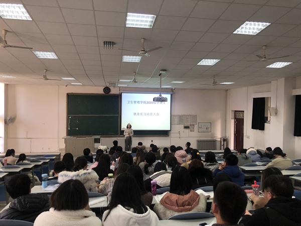 为进一步帮助毕业生明确就业方向和形势,做好充分的就业准备,提高就业热情,卫生管理学院于2019年12月27日在教学楼301召开了2020届毕业生就业实习动员大会。参加本次会议的有:卫生管理学院党总支副书记刘建刚、学生科副科长王晓燕、学生科全体辅导员及2020届全体毕业生。