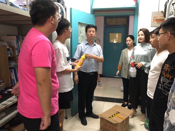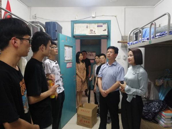走访过程中,老师们一一解答了学生开学期间的问题,并向学生们强调宿舍建设的重要性。
