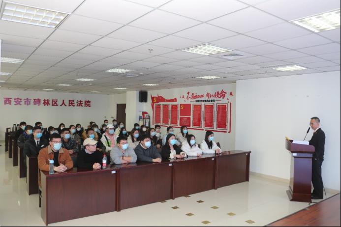 12月4日是第八个国家宪法日,今年的活动主题是“以习近平法治思想为指引,坚定不移走中国特色社会主义法治道路。”为了弘扬宪法精神,加深学生对习近平法治思想的理解,12月2日,卫生管理学院法学教研室教师带领30余名学生走进碑林区人民法院,现场聆听了民四庭庭长杜飞法官题为“以习近平法治思想为指引,坚定不移走中国特色社会主义法治道路“的专题讲座。