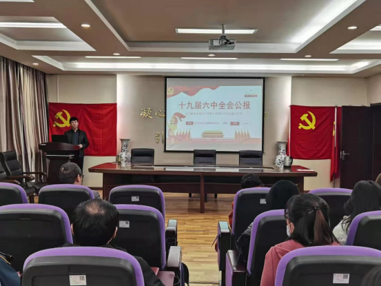 2021年12月3日,卫生管理学院党总支全体教职工党员在学院会议室开展深入学习“中国共产党第十九届六中全会”精神专题党课,本次党课由学院党总支书记刘建刚主讲。