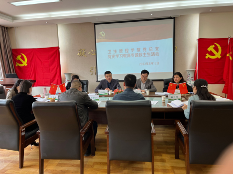 2022年4月12日上午,卫生管理学院党总支在学院会议室召开了2021年度党史学习教育专题民主生活会。校党委副书记、纪委书记、监察专员沙德忠、纪委副书记马征、工会主席景红军、招标与采购处处长杨珺莅临现场督导,卫生管理学院党总支委员参加会议。会议由卫生管理学院党总支书记刘建刚主持。