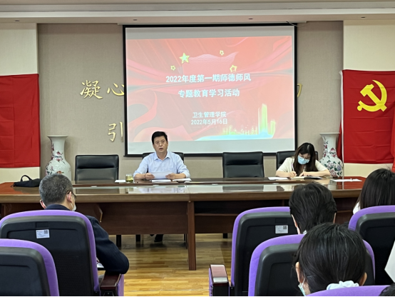 2022年5月16日,为深入学习贯彻习近平总书记关于教育的重要论述精神,落实《中共中央国务院关于全面深化新时代教师队伍建设改革的意见》、教育部等七部门《关于加强和改进新时代师德师风坚守的意见》以及陕西省教育厅等七部门《关于加强和改进新时代师德师风建设的实施意见》等文件精神,引导广大教师坚定理想信念、厚植爱国情怀、涵养高尚师德,结合学院工作实际,开展了卫生管理学院师德师风专题教育学习活动动员会和第一期师德师风专题教育学习会。会议由刘建刚书记主持,全体教职工参加会议。