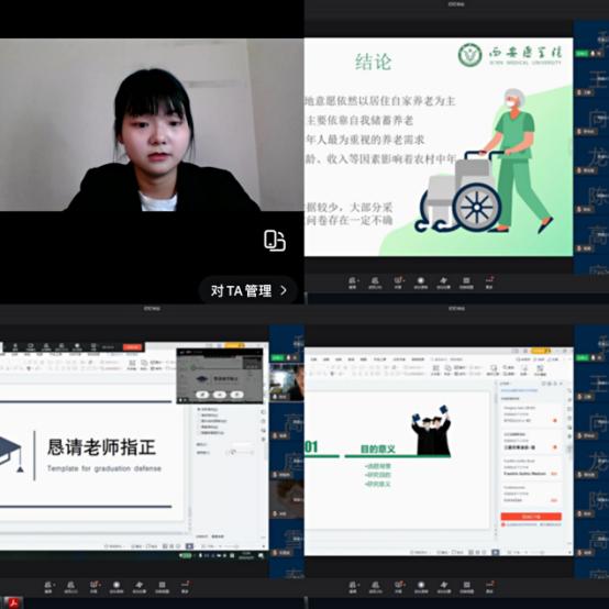 此次论文答辩通过线上形式进行,与以往线下答辩相比,在线答辩评审的严肃性和论文的严肃性没有变,不仅做到了线上线下质量同等,而且还提高了师生的信息素养,为后续开展各项在线教学工作提供了有益借鉴。(卫生管理学院 文/图 王文惠 审核/苗建宁 )