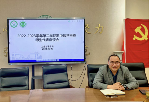 2023年5月6日10:10,卫生管理学院在学院会议室召开了2022-2023学年第二学期期中教学检查师生代表座谈会。院党总支书记苗建宁、教研室主任、实验中心主任、学院督导、教师代表、教学科全体人员、大一、大二和大三各班的教学信息员和学生代表参加会议。