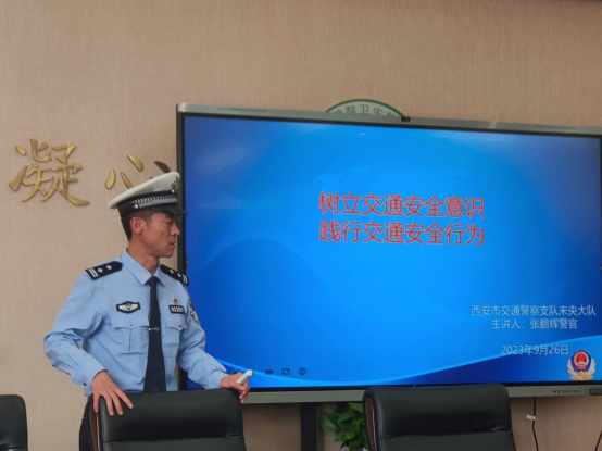 9月26日下午,由卫生管理学院、保卫处举办的主题为“树立交通安全意识 践行交通安全行为”主题讲座在卫生管理学院会议室举办。本次讲座由保卫处处长刘建刚主持,西安市未央交警大队张鹏辉警官主讲,公管2023级全体学生参加。
