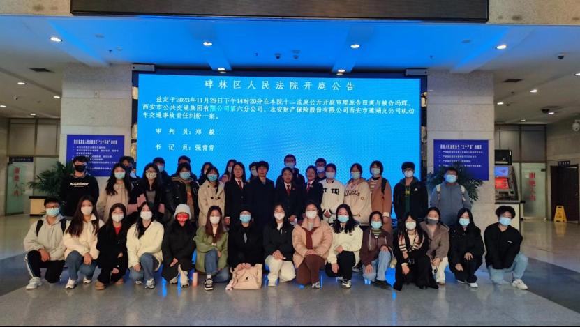 为深入学习领会诉讼法律知识,弘扬法治精神,2023年11月29日,我院法学教研室教师宋娟带领公共事业管理(卫生法学方向)2014班30余名学生赴碑林区人民法院开展实践教学活动。