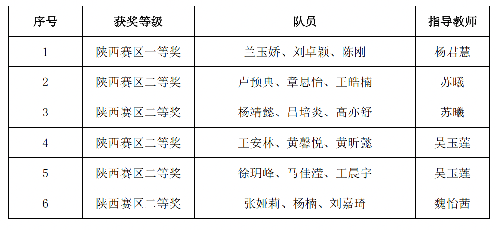 近日,全国大学生数学建模竞赛组委会和陕西省赛区组委会共同公布了2023年竞赛成绩,我校共有六支参赛队伍荣获陕西赛区一等奖1项,二等奖5项。这是我校本科生自参赛以来首次成功实现了陕西赛区一等奖零的突破。