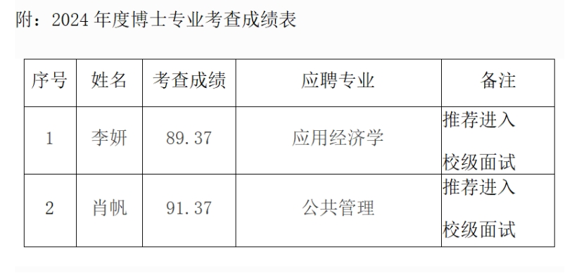 根据《西安医学院2024年度人才公开招聘工作实施方案》(西医党发〔2024〕27号)有关要求,按照学校工作安排,卫生管理学院已于2024年11月26日组织学院面试及专业考查,现将专业考查成绩予以公示,公示期5个工作日。
