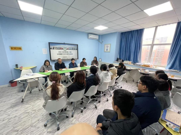卫生管理学院副院长王志玲、副书记魏慧、教学科科长和公管ICC2401班辅导员及公管ICC2401班全体同学参加会议。(文/图 任洁 审核/苗建宁王志玲)