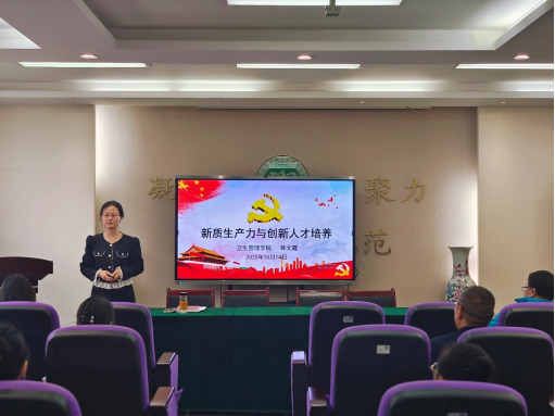 方向,2025年10月14日卫生管理学院在学院学术报告厅举办“新质生产力与创新人才培养”专题讲座,本次讲座由卫生管理学院韩文霞教授主讲。