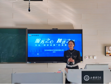 陕投康养人力资源专业经理郭亮以“时代、平台、实践、未来”为主线,作了一场内容充实、见解前沿的专题报告。他聚焦银发经济快速发展的行业趋势及养老产业机遇,强调专业人才需求紧迫性。他介绍了陕投康养作为国有企业的责任担当与全产业链安全布局及资源优势,以君颐养老为典范,解析其服务实践特色与优势,包括五大娱乐治疗体系等,勾勒从业者向复合型管理者发展的双通道职业路径,令学生对行业前景充满信心。