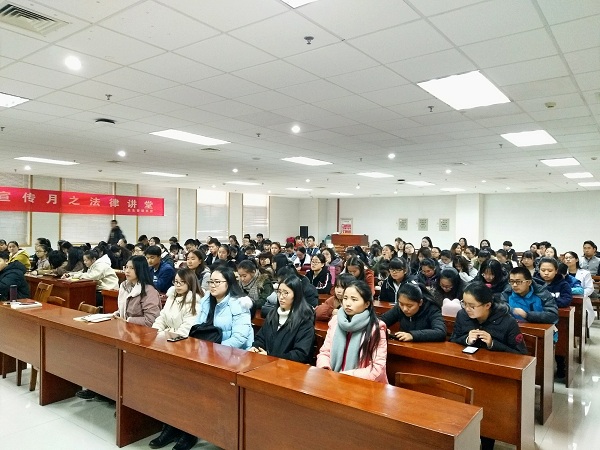 为宣传法律知识、弘扬法治精神,2017年12月14日下午2:00,由校团委主办,卫生管理系、马克思主义学院承办的法制宣传月系列活动之“法律知识大讲堂”活动,在图书馆五楼报告厅开展。本次活动由马克思主义学院教学科科长王进主持,卫生管理系副书记张士奇、副主任刘建刚、学生科王晓燕及各院系学生代表参加了活动。