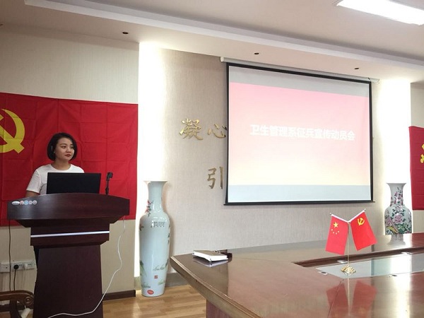 2018年5月11日,在系五楼会议室,卫生管理系在召开了以“参军报国,准备出发”为主题的大学生征兵宣传动员会,此次动员会由学生科副科长王晓燕主持。 会议伊始,王老师首先带领同学们观看了军人保卫国家的微视频,短短的视频将学生们的爱国之情带动起来,同学们个个心潮澎湃,随后王老师向同学们讲述了国家对于大学生入伍相关条件及政策,最后,耐心细致的解答学生们提出的问题。