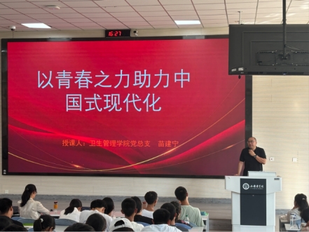 苗建宁以“以青春之力助力中国式现代化”为题, 为新生讲授入学第一堂思政课。他叮嘱同学们要强化思想淬炼,用于担当使命,自觉把个人理想追求融入实现中华民族伟大复兴的宏伟事业中,以切实行动为实现中国梦而努力奋斗。